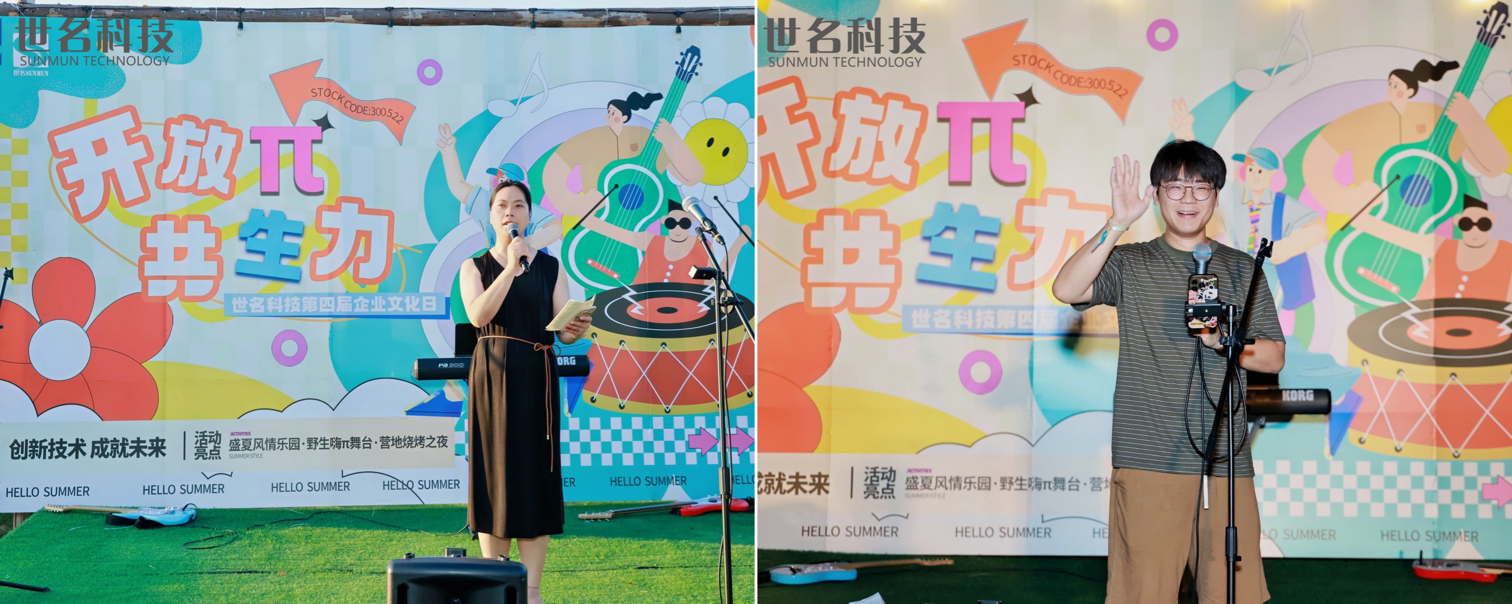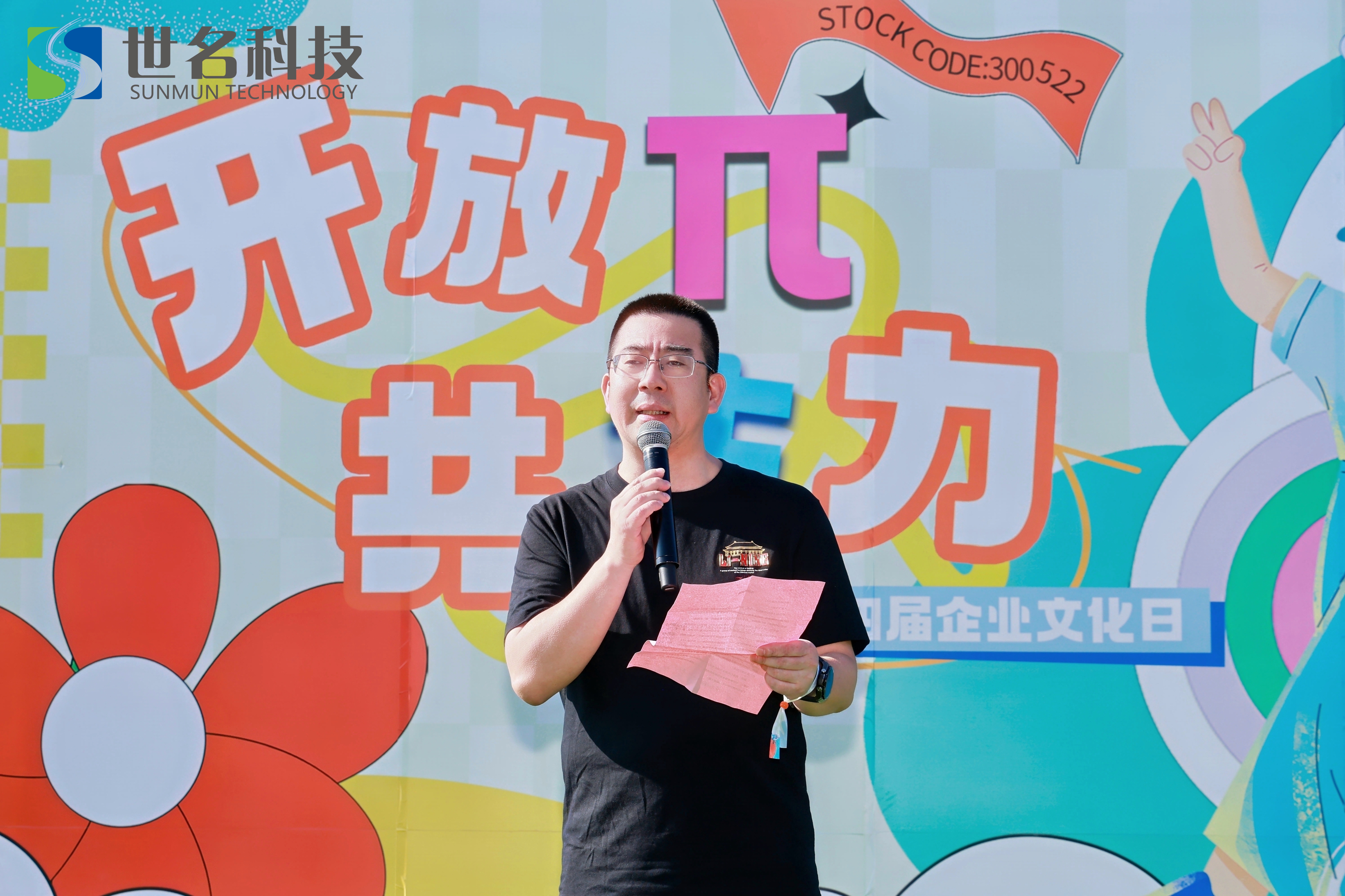 公司常务副总裁吴鹏先生登台致辞,没有严肃的报告,只有家人般的问候与真挚的感谢。吴总分享了世名成长的喜悦,表达了对世名人及家属的深深敬意,更传递了本次活动主题“开放π·共生力”的深刻含义,希望大家能够在开放包容的世名大家庭中,彼此联结、共同成长!